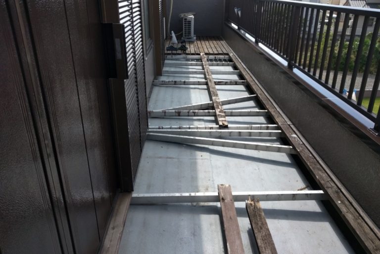 【埼玉県さいたま市大宮区】賃貸マンションベランダのウッドデッキ下雨漏りに伴う防水工事|雨漏り補修の施工事例