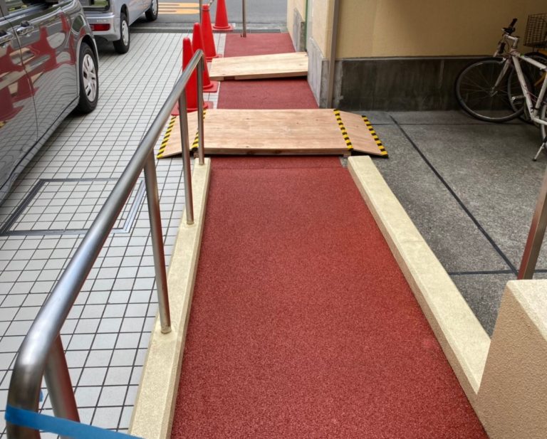 【埼玉県さいたま市】賃貸マンション入口の歩行通路をゴムチップ舗装で防滑性アップ|床改修工事の施工事例