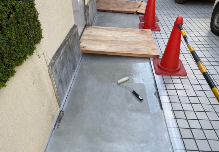 【埼玉県さいたま市】賃貸マンション入口の歩行通路をゴムチップ舗装で防滑性アップ|床改修工事の施工事例