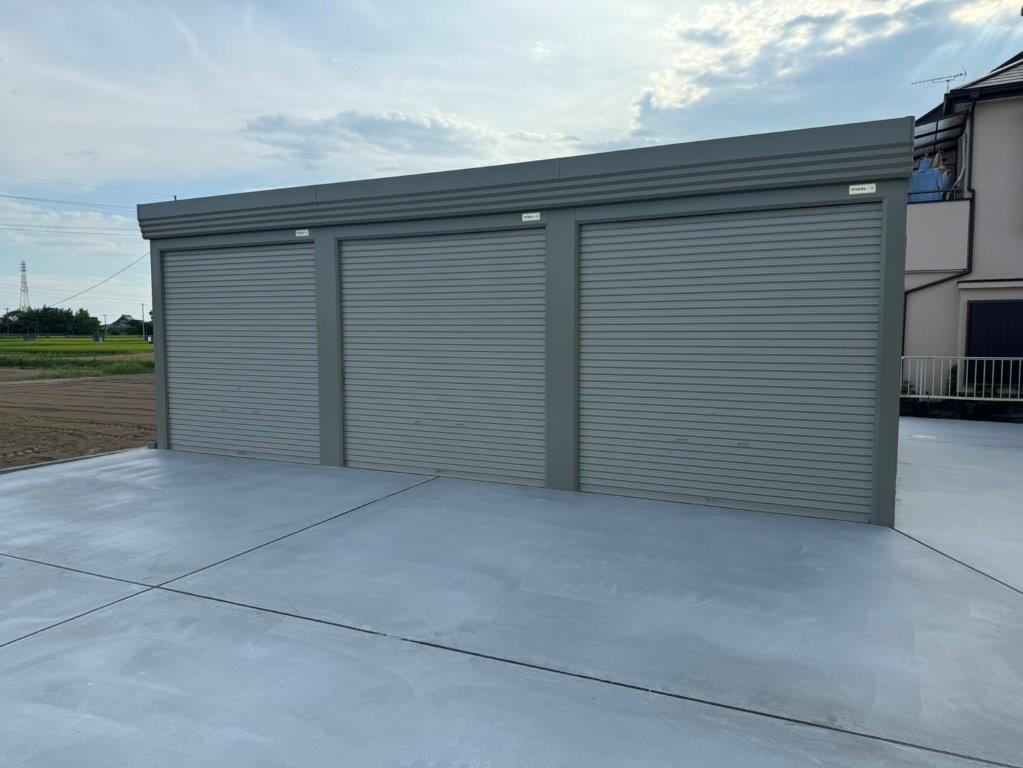 【埼玉県幸手市】戸建て住宅に愛車を3台収容できるシャッター付きガレージ設置|外構工事の施工事例
